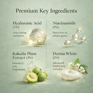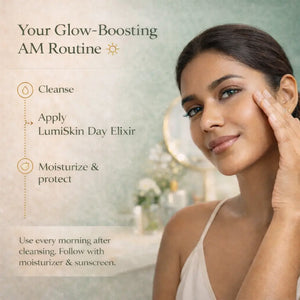 Your morning glow ritual begins here. LumiSkin Day Elixir is a lightweight, fast-absorbing brightening serum infused with 5% Niacinamide, 3% Kakadu Plum (the world’s richest natural source of Vitamin C), and multi-layer Hyaluronic Acid to instantly hydrate, visibly brighten, and give you that soft-lit radiance from the very first use.