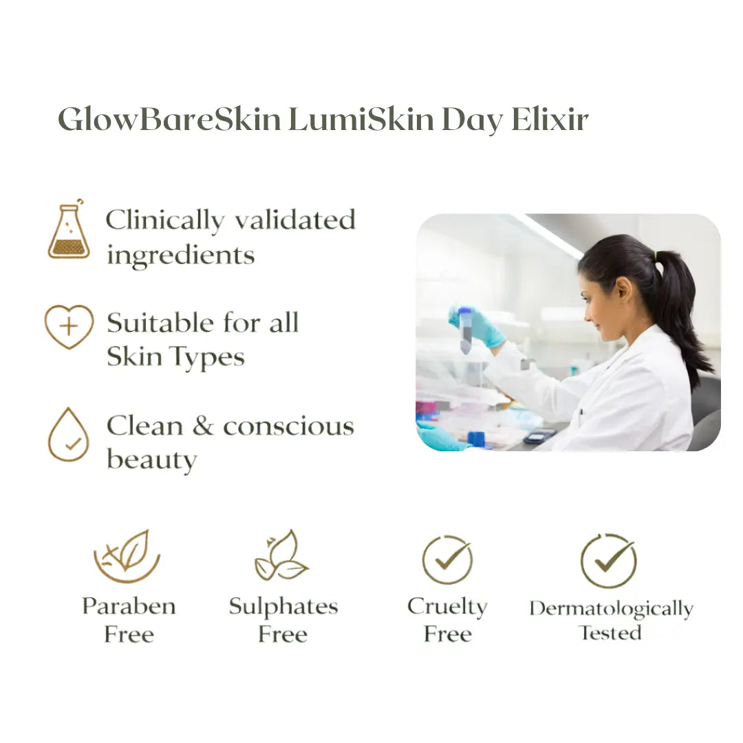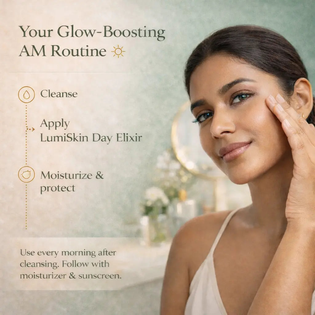Brighten. Hydrate. Illuminate - All Day Long 💎 Your morning glow ritual begins here. LumiSkin Day Elixir is a lightweight, fast-absorbing brightening serum infused with 5% Niacinamide, 3% Kakadu Plum (the...
